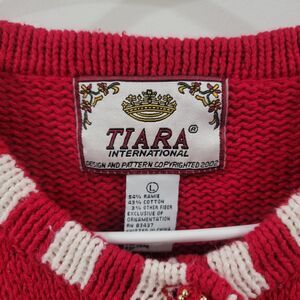 This Vintage Tiara Women's Cardigan is a festive and fun addition to your winter wardrobe. The tight-knit red sweater features a full zip, long sleeves, and a crew neckline, making it perfect for travel, parties, or casual wear. With a size large and a regular fit, this cardigan is comfortable and stylish. The snowman design adds a touch of holiday charm, and the vintage Ugly Christmas Sweater brand brings a unique and playful element to your look.
