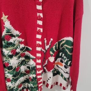 Vintage Tiara Womens Cardigan Ugly Christmas Sweater Size Large Full Zip Snowman