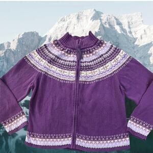 Vintage Tiara Y2K Full Zip Cardigan Sweater Women Large Purple Nordic Fair Isle