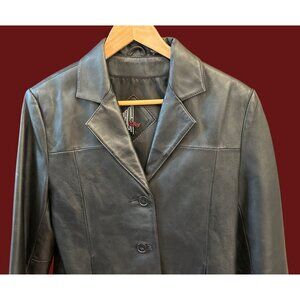 Vintage Tibca Black Genuine Leather Blazer Jacket 90s Classic Y2K Medium