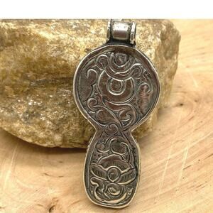 Vintage Tibetan Amber Fish Repousse Two tone Pendant