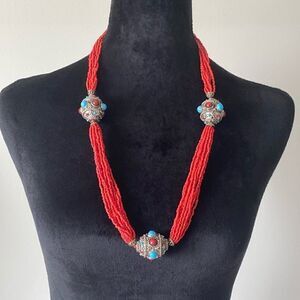 Vintage Tibeten Ornate Multi-Strand Tribal Necklace