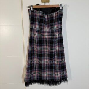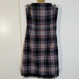 Vintage Tibi strapless plaid mini dress in navy and purple. Excellent condition. Size 4 - please note that vintage Tibi runs smaller than current Tibi designs. The dress is 100% wool with a crinoline underlayer.