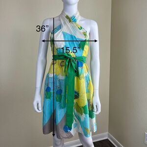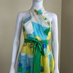 Vintage Tibi Women's Size 2 Silk Floral Halter Mini Dress Y2K Fit & Flare Retro