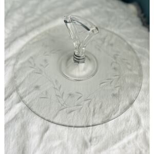 Vintage Tidbit 11” Serving Tray Dish Etched Glass Handle Floral Scallop Trim