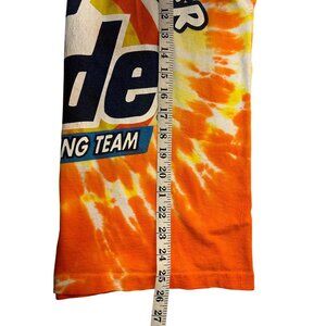 This vintage Tide Racing Team tank top features a vibrant orange and yellow tie-dye design, made from soft pre-shrunk cotton for a comfortable fit.