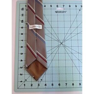 Professional, Geoffrey Beene, designer, polyester, poly, silk, blend, sheen, striped, gray, grey, beige, pewter, red, white, blue, vintage, retro, 1980s.