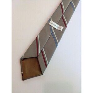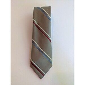 Vintage Tie 1980s Striped Necktie Pewter Beige Blue White Red Striped 3" W 56" L