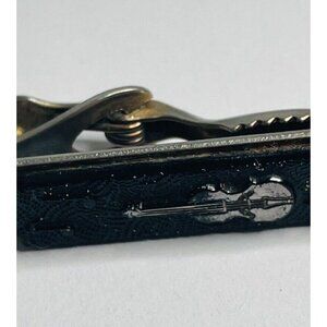 Vintage Tie Clip Bar - Silver Violin & Music Notes on Black Musician Theme (V6)