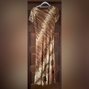 Embrace a bohemian vibe with this stunning brown tie-dye maxi dress. Perfect for casual outings or beach days.