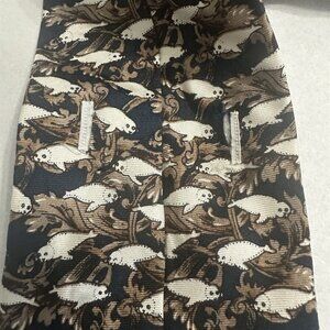 Vintage Tie Men's Necktie Seal Sea Lion Blue Artsy Nature no material tag...3 3/4" wide and 59" long.....look like Museum Artifacts Tie but the tag has been cut off