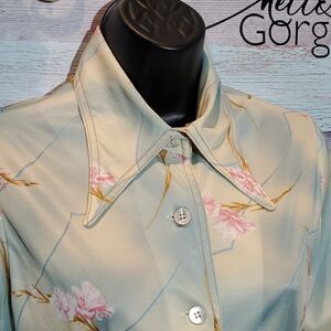 Vintage Tie Dye Floral Print Dagger Collar Blouse Sz M