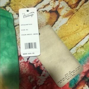 Bright tie-dye tank with a bold spiral design. Crafted by Vintage for a unique look.