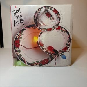 Vintage Tienshan Deck The Halls Christmas Holiday 16 PC Fine China Set of 4 1994