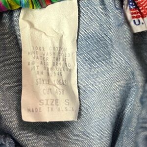 Vintage Tiered Denim Maxi Skirt by On The Verge - Made in USA. Elastic waist. 100% Cotton. Excellent condition!. Size Small. Waist 12” (laying flat and not stretched), Length 34.5”