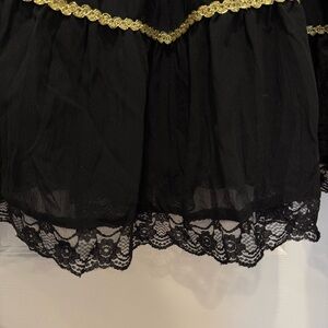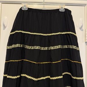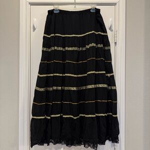 Vintage Tiered Maxi Skirt Size L Black Gold Metallic Lace Boho Gypsy Peasant