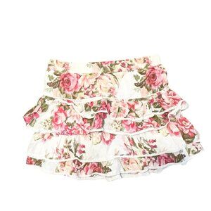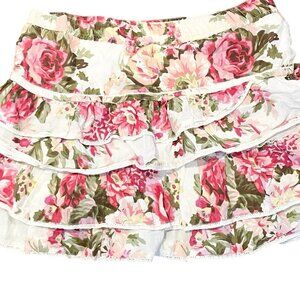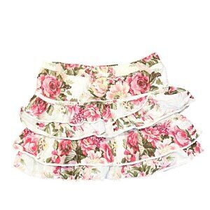 Vintage Tiered Ruffle Mini Skirt Y2K Rose Floral Print Cottagecore Fairy Girly