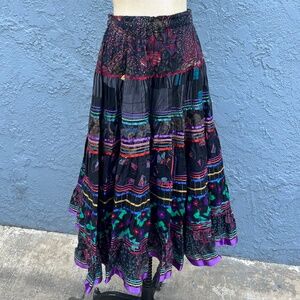 Vintage handmade tiered skirt. Floral embellishments. Fits like a womans small.