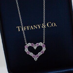 Tiffany & Co. Platinum Open Heart Necklace with Diamonds & Pink Sapphires – Vintage 2005