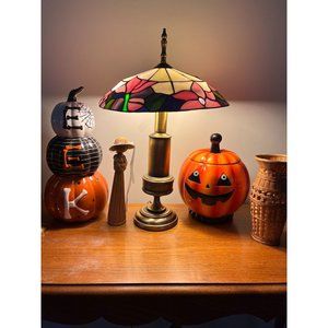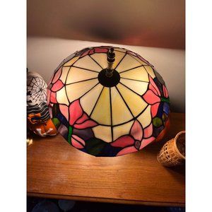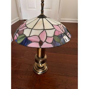 Vintage Tiffany Style Stained Floral Glass Table Lamp