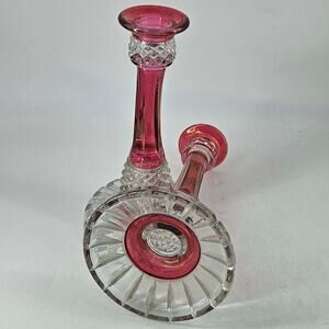 Vintage Tiffin Glass Cranberry Baronial Candlestick candle Holder Set of 2