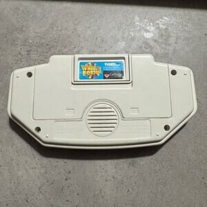 Experience the classic challenge of the "1995 TIGER Electronic Wheel Of Fortune Handheld Game" now with the original cartridge included! Perfect for fans of vintage gaming and those who love the thrill of a spinning wheel, this handheld electronic game brings the excitement of the popular TV show right to your fingertips.