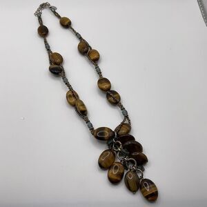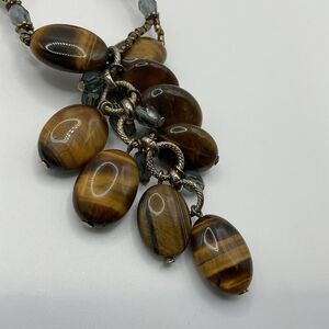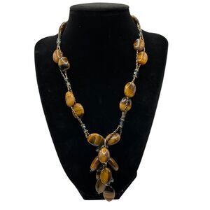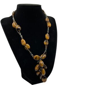 Vintage Tiger Eye Necklace Y-Drop Signed by Grace Adjustable 16 - 18 Inch and a 3 inch drop in the tiger eye pendant cluster.