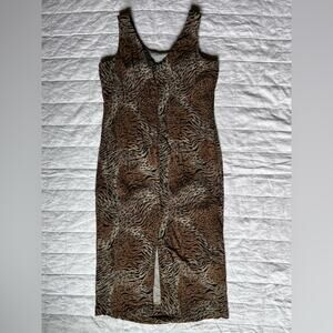 Vintage Tiger Leopard/Cheetah Print Crinkle Overlay Midi Dress Mobwife Maximalist -Large