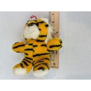 Vintage Tiger Plush Toy Orange Black Stripes Red Hanging Loop Small 6"