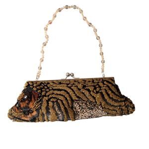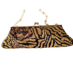 Vintage tiger print beaded clutch bag