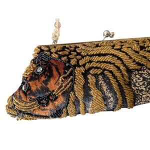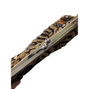 Vintage Tiger Print Beaded Embroidered Kiss Lock Clutch Purse