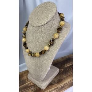 Vintage Tigers Eye Chip & Agate Beaded Necklace 17” L