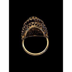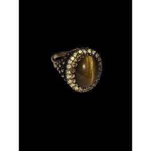 Vintage Tigers Eye Ring Cabochon Rhinestone Halo Cocktail 18 GE Espo Gold-Tone S