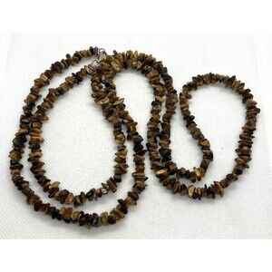 Vintage Tiger's Eye Stone Single Strand 40'' Necklace Sterling 925 Silver 66g