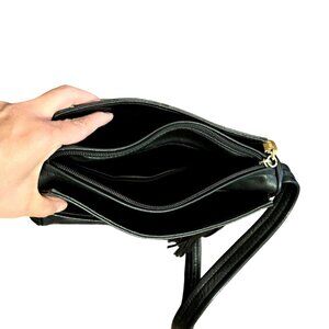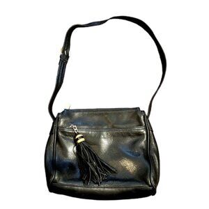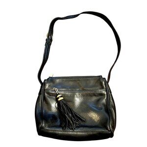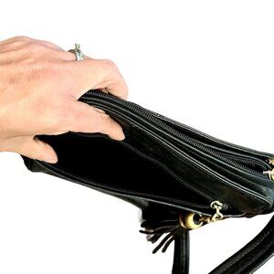 Vintage Tignanello Black Leather Crossbody Bag With Tassel & Multiple Compartmen