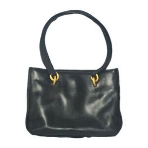 Vintage Tignanello Shoulder Bag Black Smooth All Leather Gold Ring Accents Chic