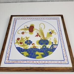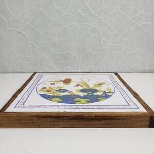 Vintage Tile Trivet Semigres Italy Wood Framed Hand Painted Flower Art MCM