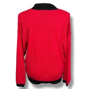 Sweater Cardigan Collared Button Down Dog Theme Red Vintage Timber Lea