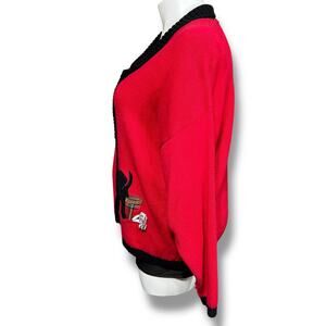 Red Dog Theme Collared Button Down Cardigan Sweater Vintage Timber Lea