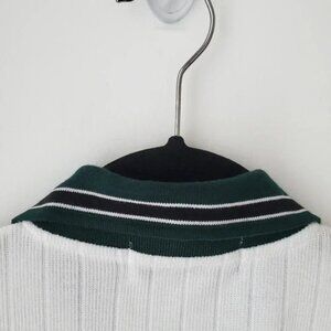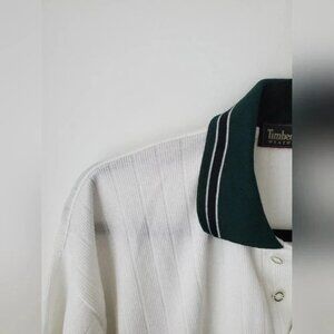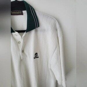 Vintage timberland polo shirt in excellent condition. white with details. green collar. 100% cotton.