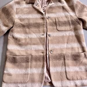 Striking vintage wool blend blazer by TIME Postmodern in a soft neutral ombre stripe. Blush pink satin lining adds an elevated touch. Quiet luxury meets vintage minimalism, perfect worn oversized for a modern look.