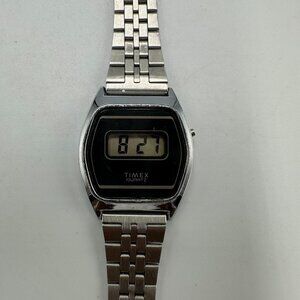 Vintage Timex Digital Watch Women Silver Tone 24MM LCD K-Cell New Battery 7.5"