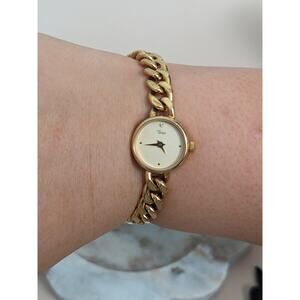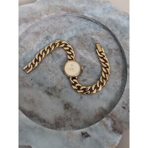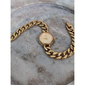 Vintage Timex Gold Tone Quartz Chain Link Watch Round Bezel 6.75in Working