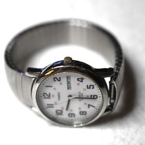 Vintage Timex Indiglo Military Dail Silver Tone Metal 6" Stretch Working Watch New Battery Unisex