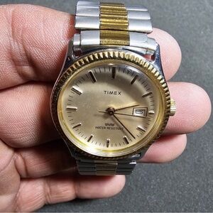 Vintage Timex Mechanical Wind Mens Watch Silver Gold Tone Date Just Working T 33
