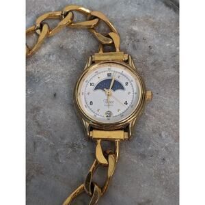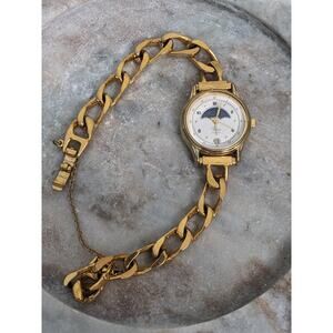 Vintage Timex Quartz Moonphase Gold Tone Chain Watch 7.25in working