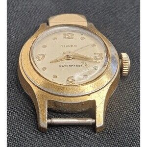 Vintage Timex US Time Corporation Waterproof Wrist Watch 1950's As Is. The hands move when adjusting the time, but the second hand is hanging up after it's wound up. It works for a few seconds and then stops. Please note pictures for condition