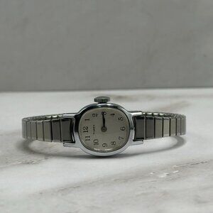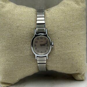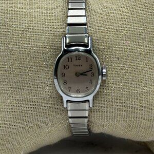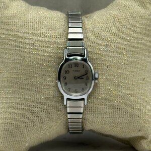 Vintage Timex Watch Women Silver Tone Dainty Stretch Band Manual Wind 6"