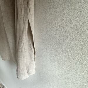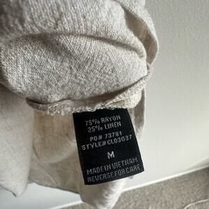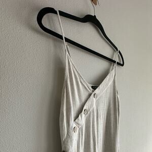 True vintage from the late 90s/early Y2K era, this oatmeal-toned midi dress is made from a breezy rayon-linen blend and features an asymmetrical wooden button detail across the chest. Adjustable spaghetti straps. Side slits for movement. Natural, unfussy, and quietly chic.