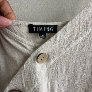 Vintage Timing Linen Blend Midi Dress – Adjustable Straps, Wooden Buttons, Natural Texture (Size M)